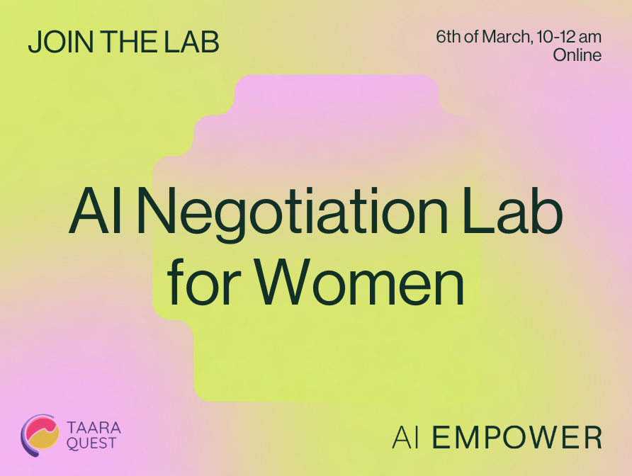 Join our AI Empower Lab for an exclusive hands-on testing session with TAARA QUEST, an AI-powered tool designed to support you in salary negotiations, leadership conversations, and confidence-building.